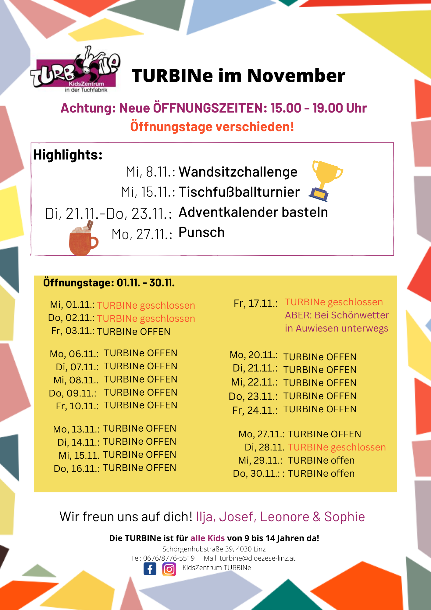 Monatsprogramm November Im November haben wir uns wieder ein abwechslungsreiches Programm überlegt. mehr: Monatsprogramm November
