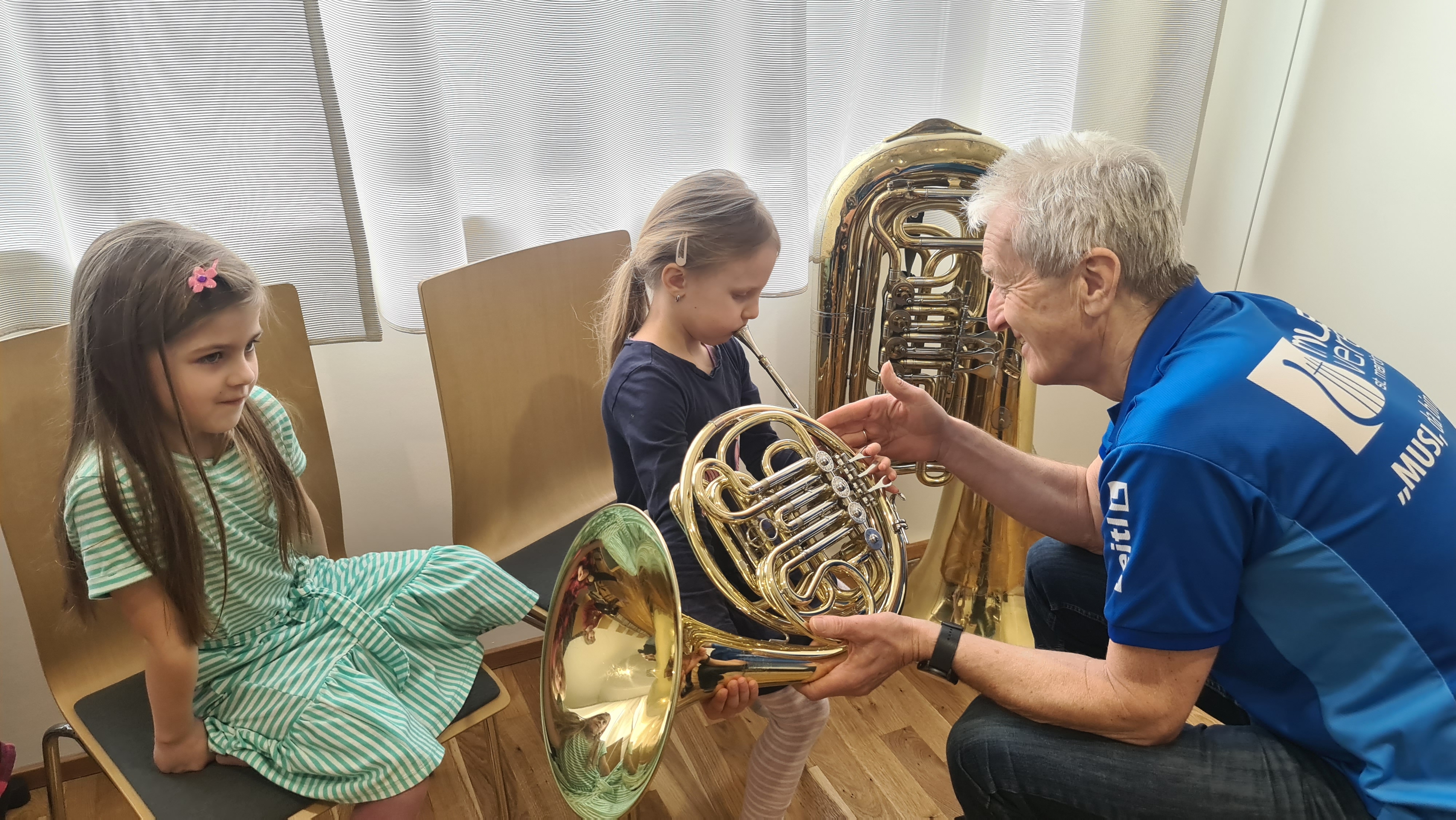 Anschließend durften die Kinder verschiedene Blasinstrumente