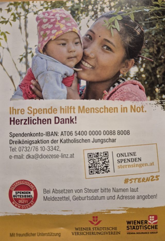 Auch heuer wieder stehen die SternsingerInnen unserer Pfarre bei Wind und Wetter draußen, um für die Dreikönigsaktion der Katholischen Jungschar zu sammeln.