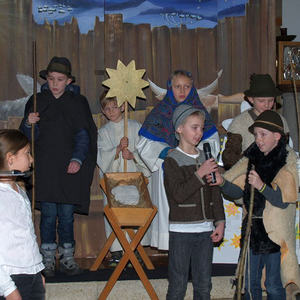 Der kirchliche Teil der Oberkappler Vorweihnacht 2015 wurde gestaltet von den Volksschülern, dem Kirchenchor, den Bäsern der Musikkapelle Oberkappel, Erzählungen von Liesi und Franz Hauer, dem Jugendchor und den Lehrern der Volksschule Oberkappel.
