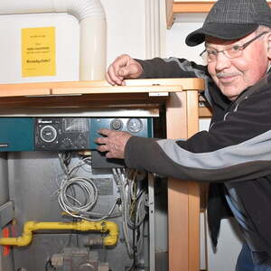 Mehrmals in der Woche sieht er nach dem Rechten, programmiert die Gasheizung nach dem Veranstaltungsplan für die einzelnen Räume. Bei Veranstaltungen im großen Saal heizt er auch im großen Holzofen.