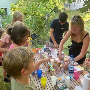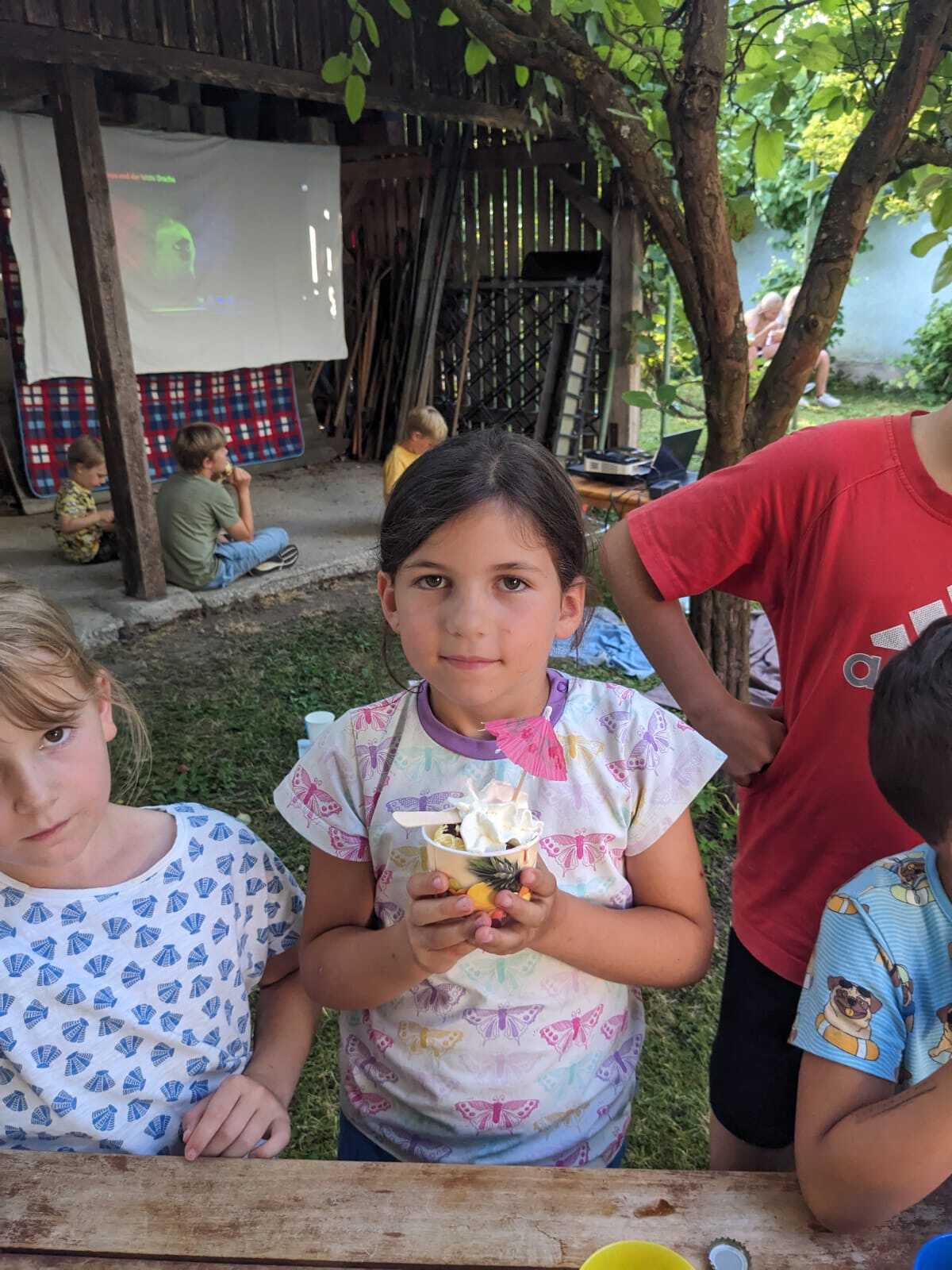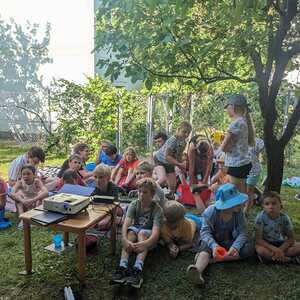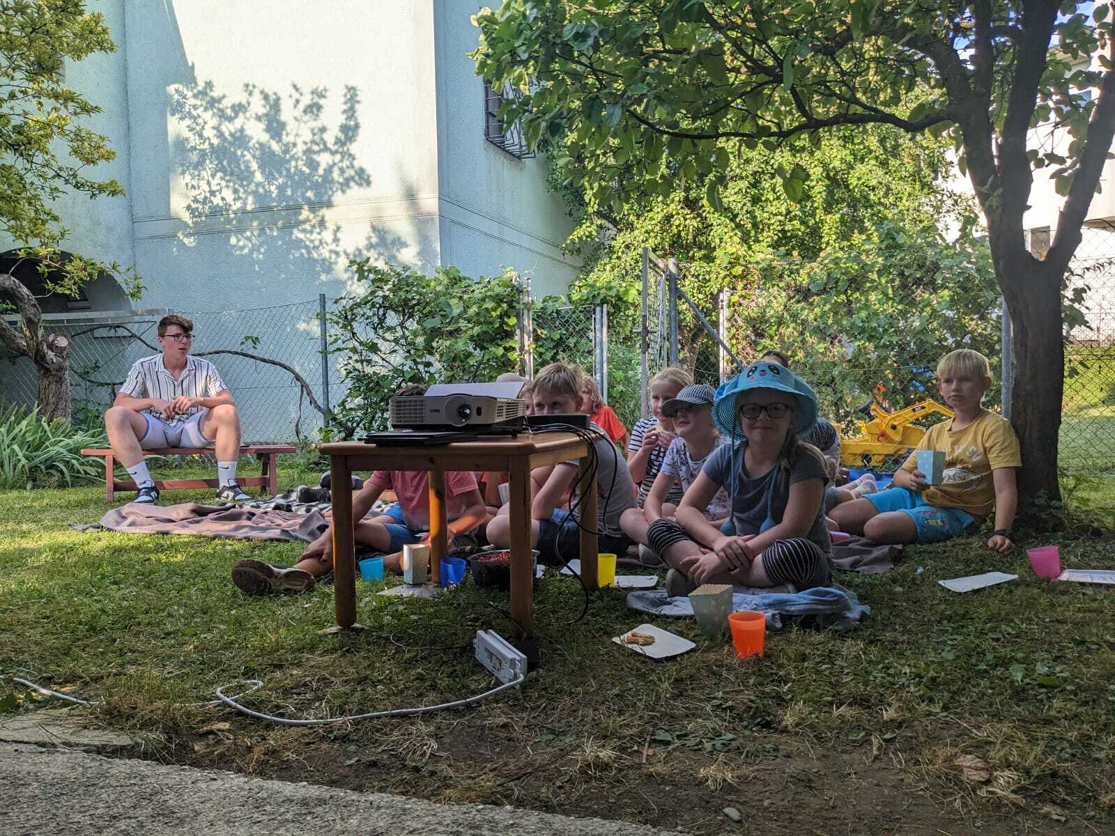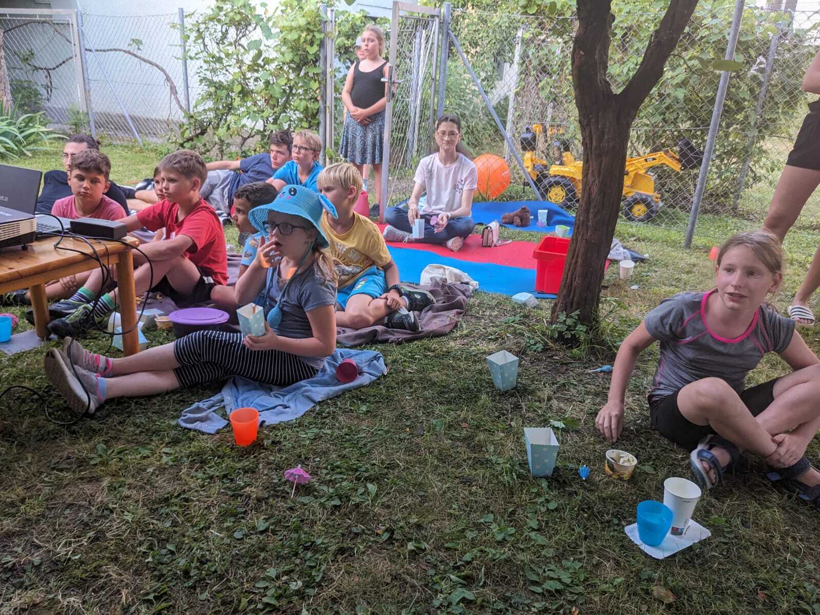 Im Pfarrgarten bereiteten wir eine Art Sommerkino für die Kids vor. Dank ausgeklügelter Technik und Raffinesse war es möglich, gemeinsam den Film "Raya und der letzte Drache" anzuschauen.