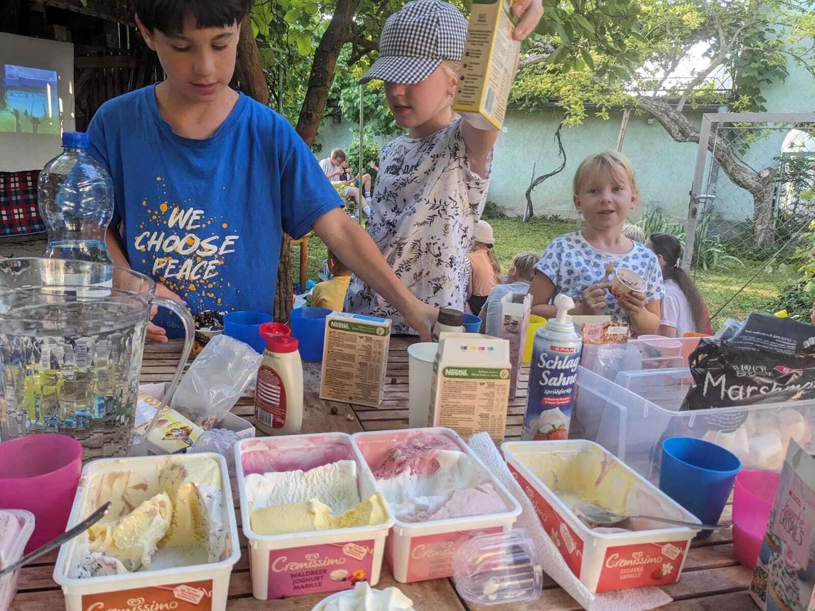 Es gab g'schmackige Pizzen - so viele das Herz begehrte - und als Nachtisch ein Eis-Buffet, das keine Wünsche offen ließ. Natürlich durften auch Snacks beim Kinoabend nicht fehlen.