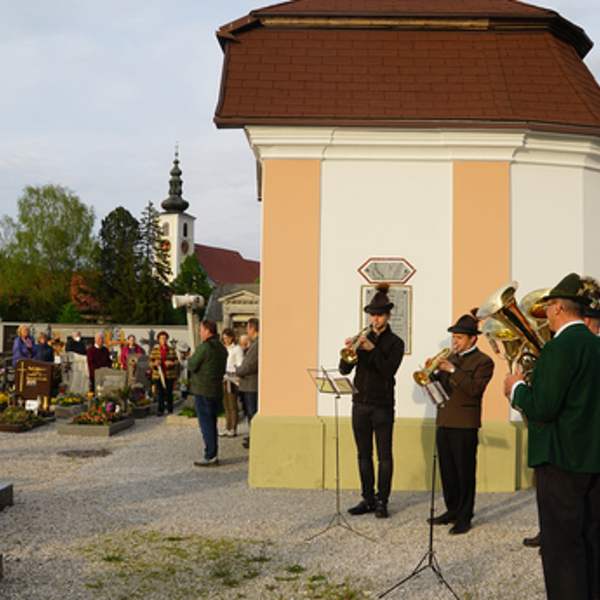 Zu Muttertag gestaltete die Bläsergruppe musikalisch die Abendmesse und begleitete im Anschluss die Kirchenbesucher zum Friedhof, wo bei schönem Wetter eine kurze Andacht stattfand.