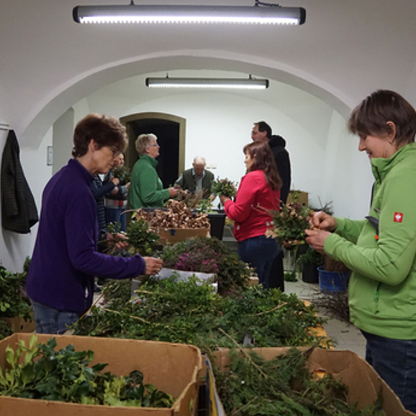 Am Donnerstag, 07.04., lud das KFB Team zum Palmbuschenbinden in den Kaplanstock ein.