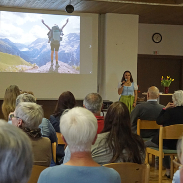 Letzen Sommer wanderte Evelyn Pointl alleine von München nach Venedig, den so genannten Traumpfad.  Ihre Erlebnisse, Eindrücke und Erfahrungen berichtete sie den interessiert lauschenden Besuchern.